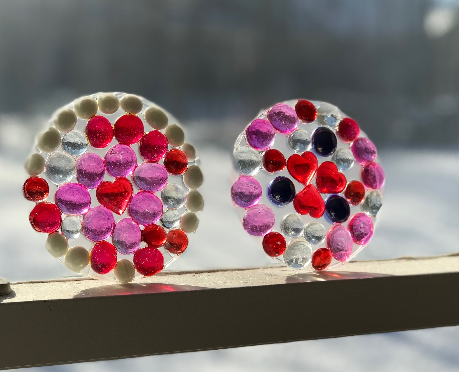 -decorative glass gems of various valentine sizes, shapes or colors (reds, pinks, purples, whites, hearts, etc)